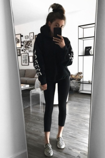 If anyone was the first person to hit their nearest juice bar for an acai bowl post SoulCycle class, it was definitley Lauren Elizabeth. This social media sensation is shamelessly famous for posting pics on her Instagram feed of her looking au naturel in her post-workout attire. But unlike other bloggers who choose sneakers as their go-to footwear after their fitness class, Elizabeth accessorizes with funky, yet fashion-forward kicks. From printed slip-ons to furry slides, the options are endless. A unique pair of shoes are the perfect way to amp up a simple leggings and tee ensemble.