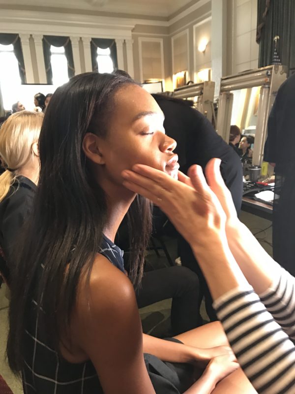 The second floor of the New York Bar Association bustled with sky-high models wearing black nylon capes wrapped around their shoulders. The frenziness displayed backstage at the Sachin + Babi SS18 Runway Show was due to none other than the stylish monster herself, New York Fashion Week. This year, the pretty ladies got their ‘glam on’ from AVEDA’s hair and makeup professionals. We had the chance to chat with lead makeup artist, Janell Geason, and head hair stylist, Jon Reyman to get the inside scoop on the latest beauty trends for Spring/Summer ’18.