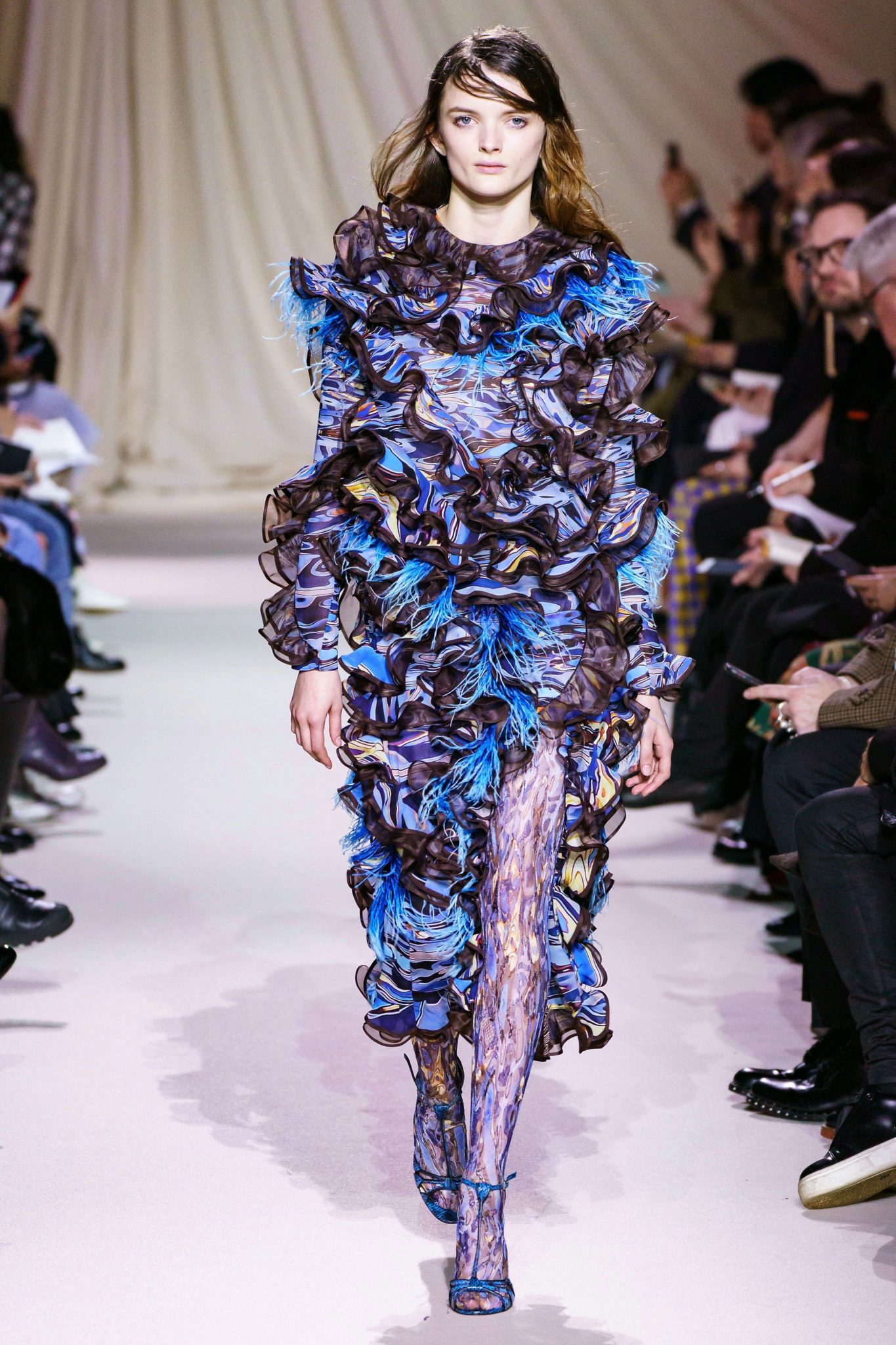 They now call her a demi-couturier. Because yes, her creations are always works of art and worth collection. For Fall 2019, Katrantzou looked to the earth’s elements for inspiration and created a collection filled with color, textures, an exuberant use of ruffles and ostrich feathers, and one hell of a poncho that still haunts our dreams. Earth, air, fire, water for the win.