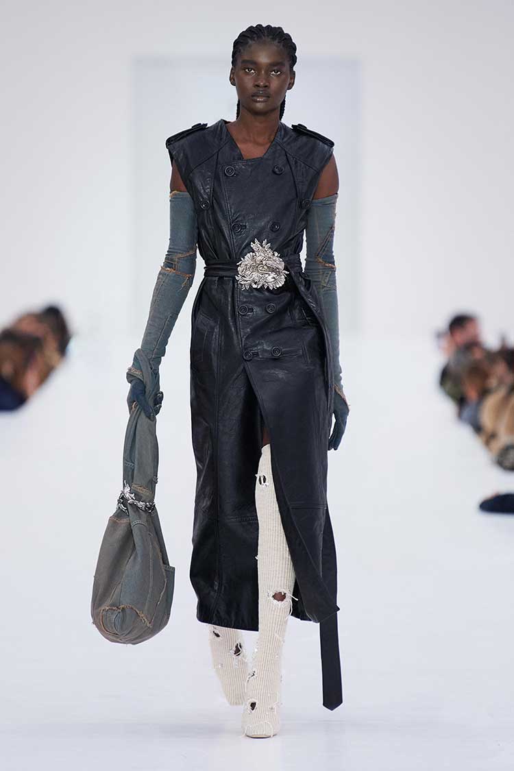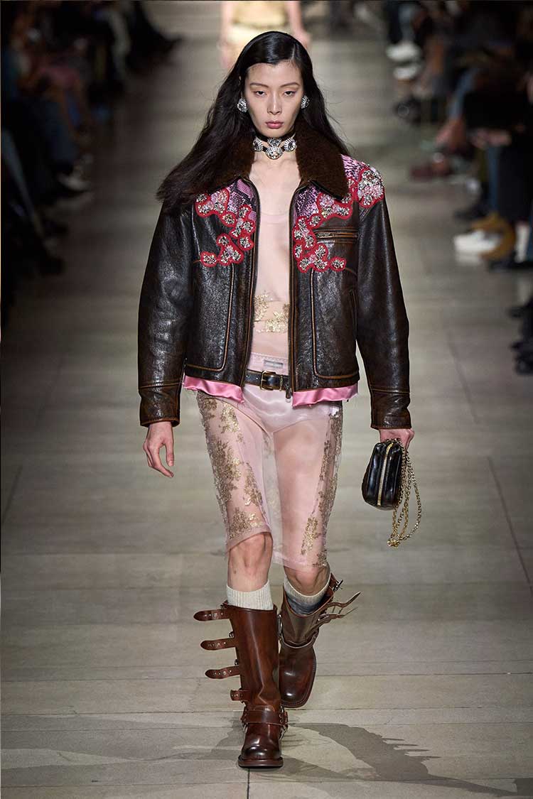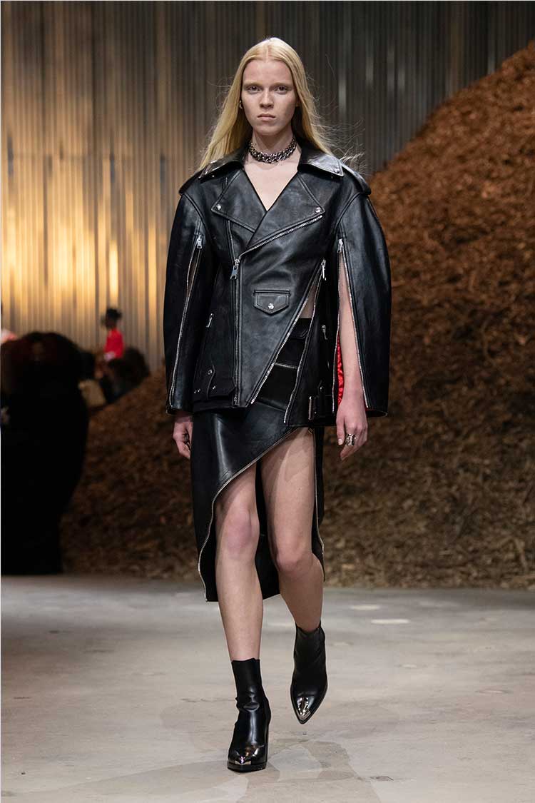 Leather for fall? Groundbreaking, I know. But the new season’s leather has nothing to do with the soft, dainty, buttery looking leather of recent memory. Rather, designers opted-in for edgy, heavy-duty, thicker, and worn-in materials. Some favorites come from Alexander McQueen, Miu Miu, ACNE Studios, and Diesel.