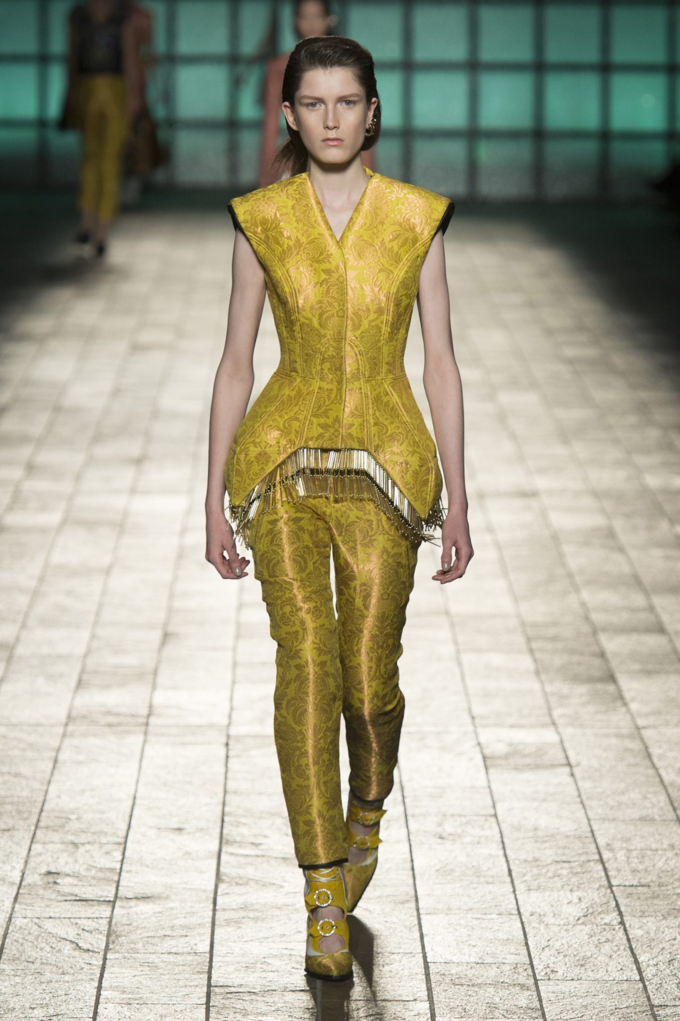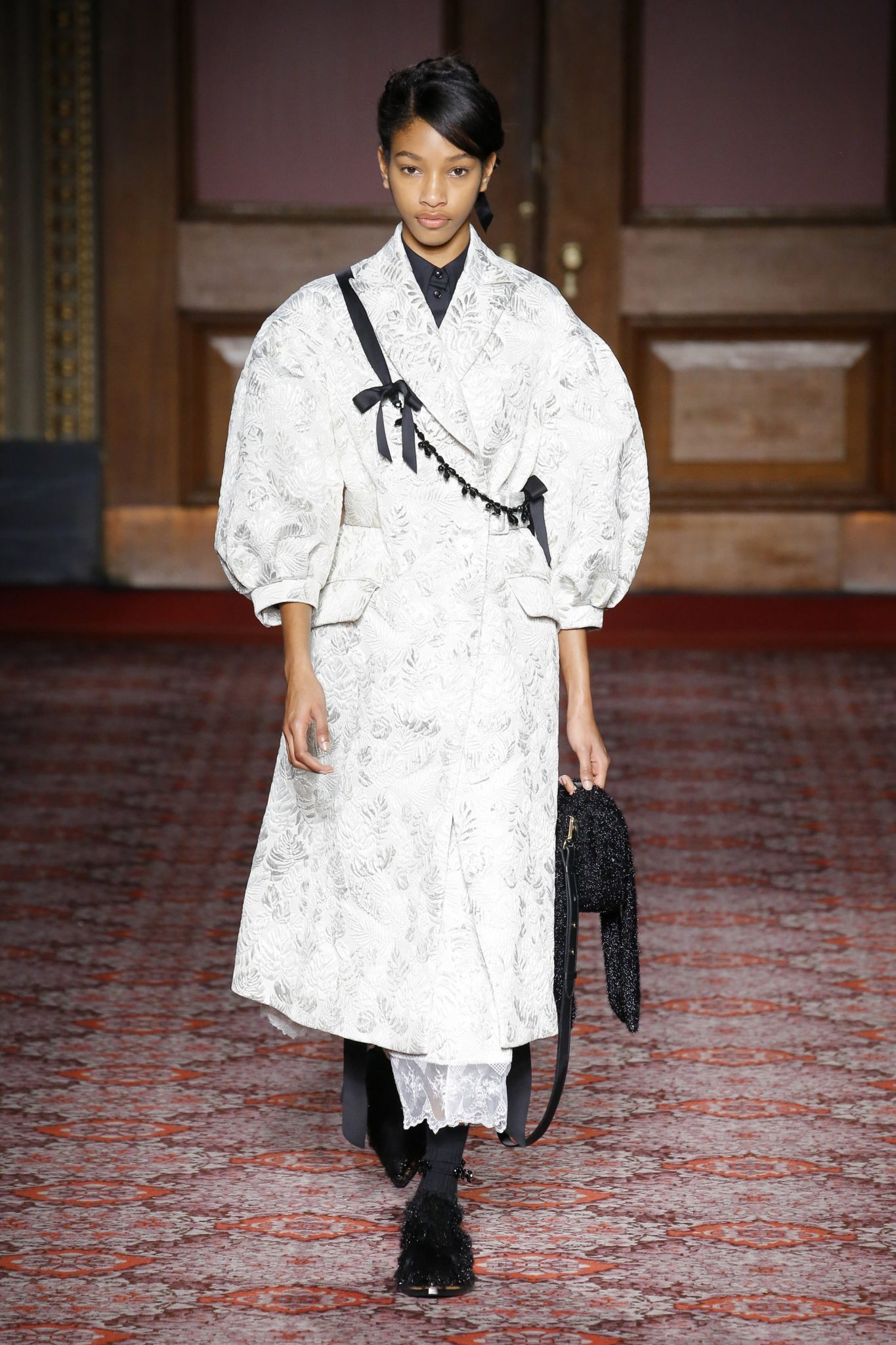 Leave it to the Brits to bring back opulent, old-world brocade to the runway. After all, jacquards are the quintessential British heritage fabric. And it took on many forms this season—in a striking lampshade jacket at Mary Katrantzou, an oversized coat at Simone Rocha, and a tailored suit at Christopher Kane. Weighty, metallic executions of the theme were carried out at Erdem, Roland Mouret, and Preen by Thornton Bregazzi.