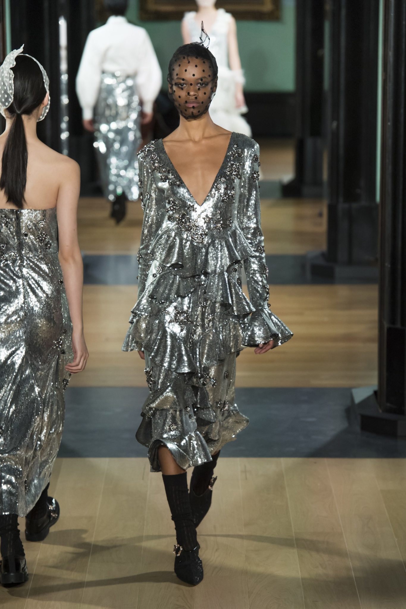 Much like their NYC counterparts, the London designers embraced the full-on silver look. There was space-age tinsel Marques Alameida, crazy-cool head-to-toe metallic looks from MM6 at Margiela, and a feminine twist of the trend at Erdem. From all this silver on the runways one thing was clear: Next season, it is all about standing out in the crowd.
