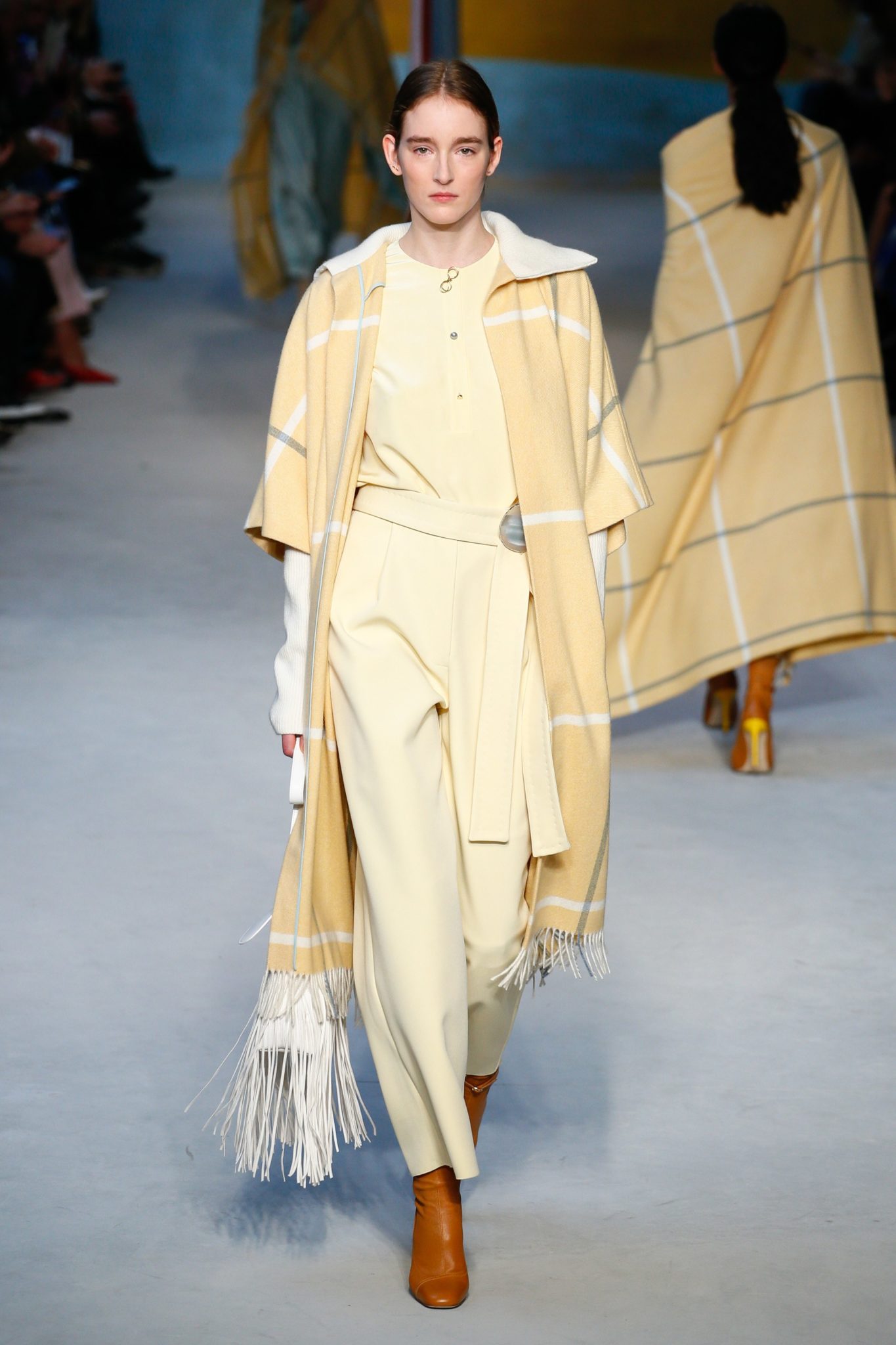 From buttercup yellow to classic red, the beloved plaid showed up time and again on London’s runways—as a skirtsuit with a puffer at House of Holland, as a gorgeous red suite at Emilia Wickstead, and as a blanket coat at Roksanda.Â