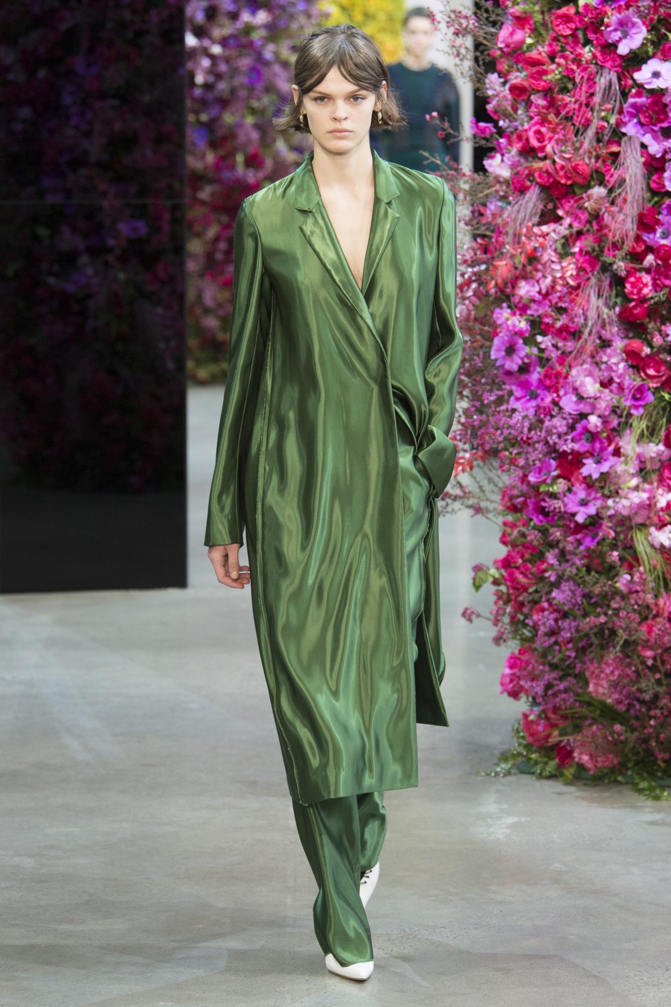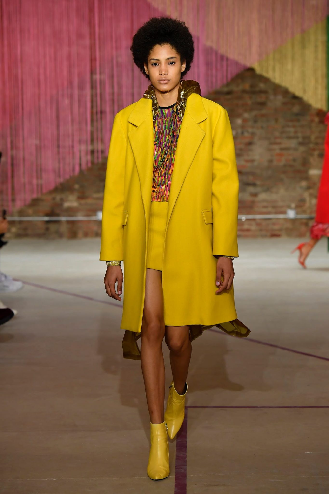 We saw major pops of the sunshine color across many a runway, and many a way. Bottega Veneta — who showed in New York this season — opened the show with a silky, yellow pajama suit and later gave us the most beautiful all-yellow suit. Tibi threw the color onto coats, and Milly opted for a lovely skirt suit.