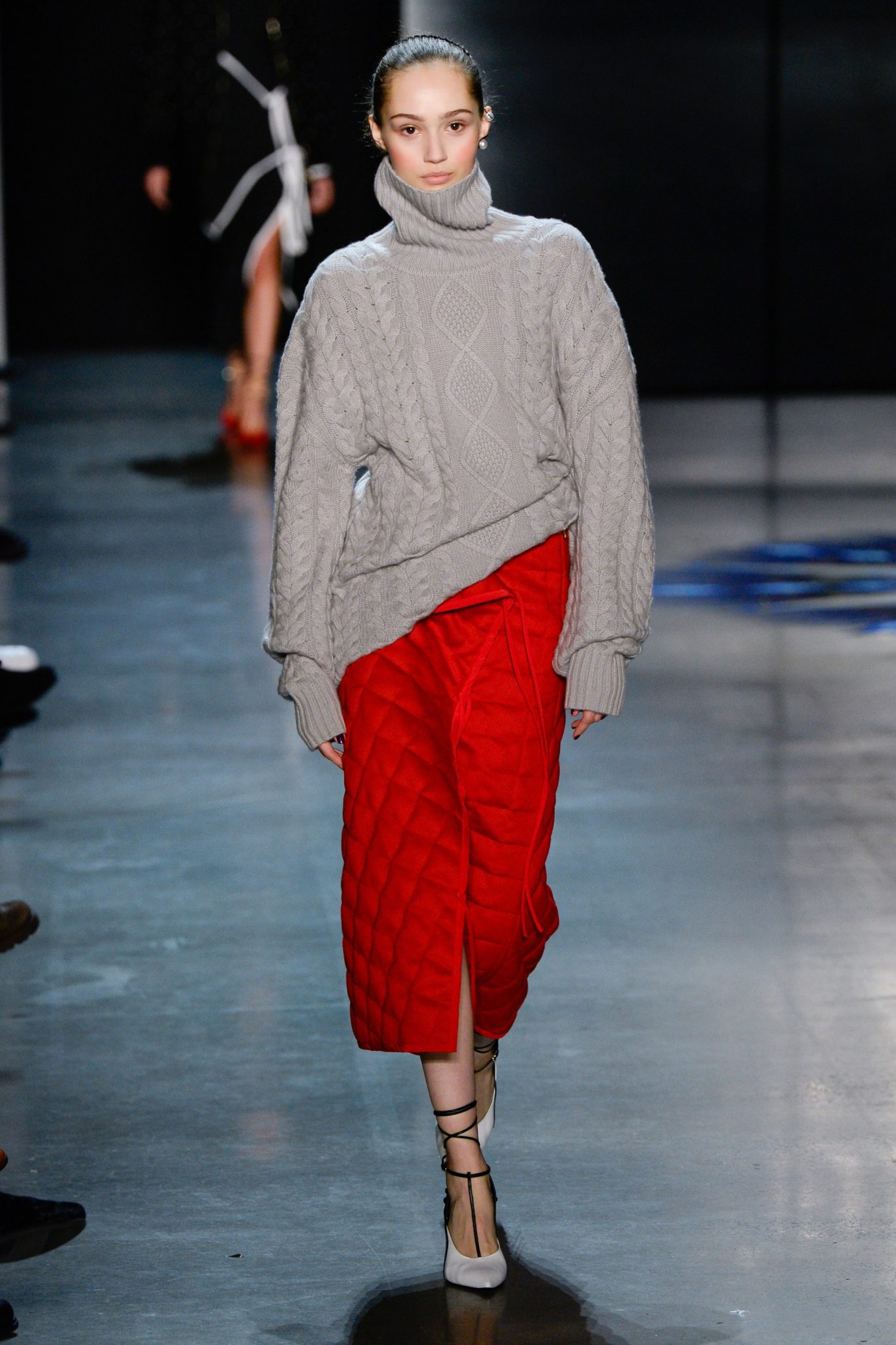 There’s a new life in quilted materials, very different than the bag forms we are used to seeing it. The puffer-like texture come in unexpected silhouettes thanks to Nicole Miller, Derek Lam, Oscar de la Renta and Prabal Gurung. We are particularly loving the elegant knee-length skirt at Prabal.