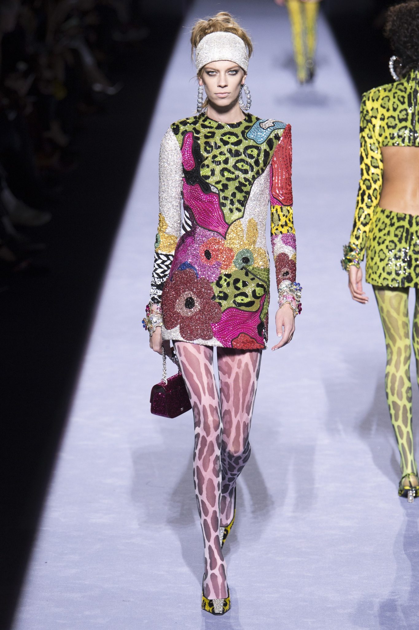 Blame it on the huge 80s influences sweeping almost every runway, because colorful, statement-making tights are making a comeback next season. From bright a orange at Adam Selman to animal prints at Tom Ford and traffic-stopping neons at Jeremy Scott, whichever color you are into, odds are it will be in style when it comes to hosiery next season.