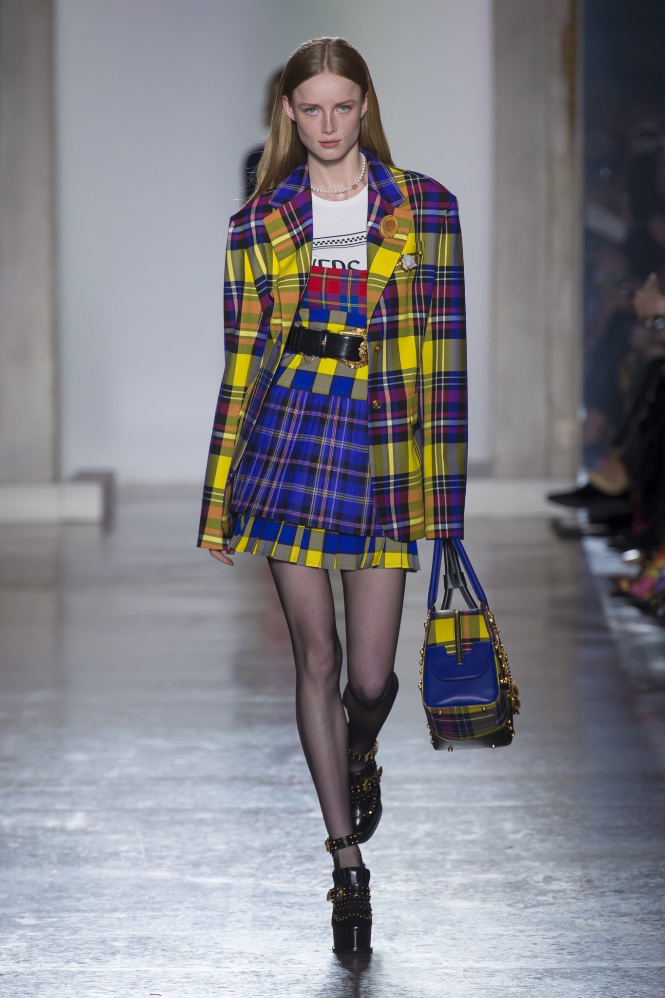 Plaid has also been around for several seasons at this point, but, this season’s plaid is more fun than ever. Think Cher Horowitz of the 21st century, and get excited because we are getting colorful plaid by way of Versace, Michael Kors, and Prada. As if you’d wear anything but plaid this fall. [sce emoji=”tongueout”/]