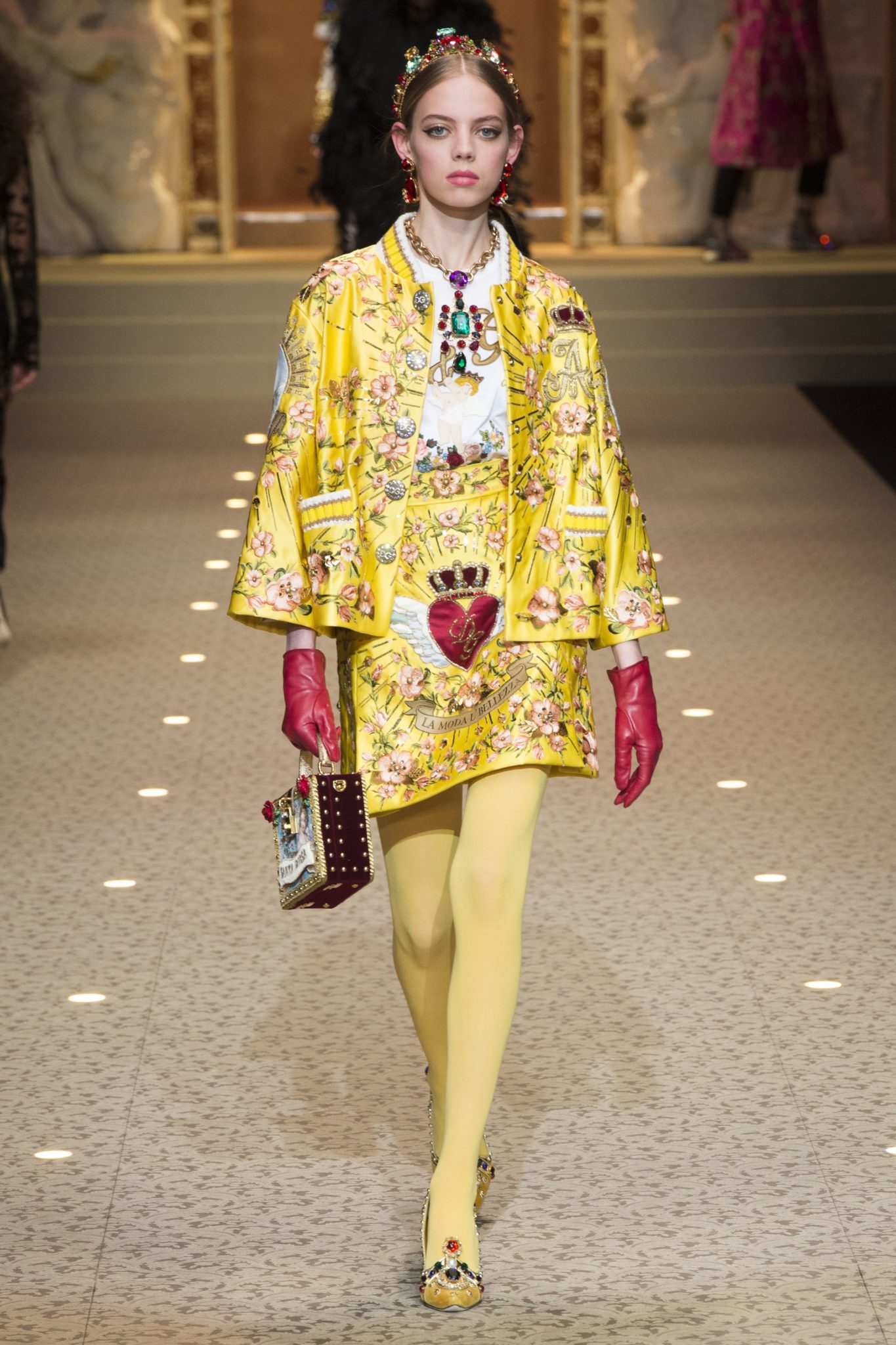 What is could inject a dose of fun on a dreary autumn day than wearing a pair f colorful tights? Many designers offered various versions of the trend with colors ranging from neon greens, to yellows, blues, orange and pinks. We love the all monochrome looks from Emilio de la Morena and Dolce & Gabbana, and the power clashes at Jeremy Scott and Hader Ackermann.