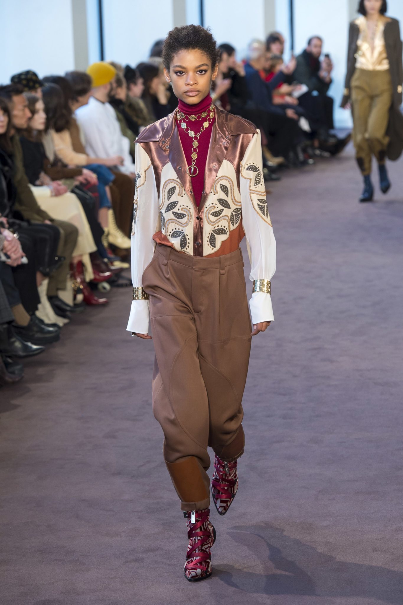 Many, many designers want us to saddle up this fall and we are thrilled to see cowboy boots, practical fringe, wide shoulders, yoke detailed shirts, neck scarves, rustic belts and bolo ties. Isabel Marant, Alberta Feretti, Chloe, DSquared2, Louis Vuitton, Heremes, Calvin Klein, Coach, David Koma, Max Mara and many more gave us their version of West World, and we are here for it.