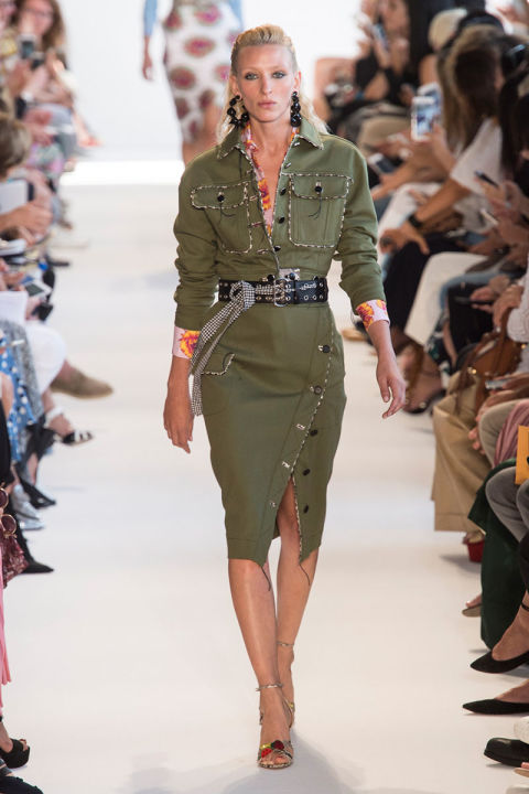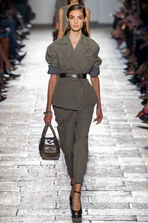 Utility green will be our neutral come spring, and I am not mad about it. The muted, earthy color was seen across the global runways, including Loewe, Kenzo, Altuzarra, Tod’s, Ferragamo and more. How gorgeous is the Bottega pantsuit below though?