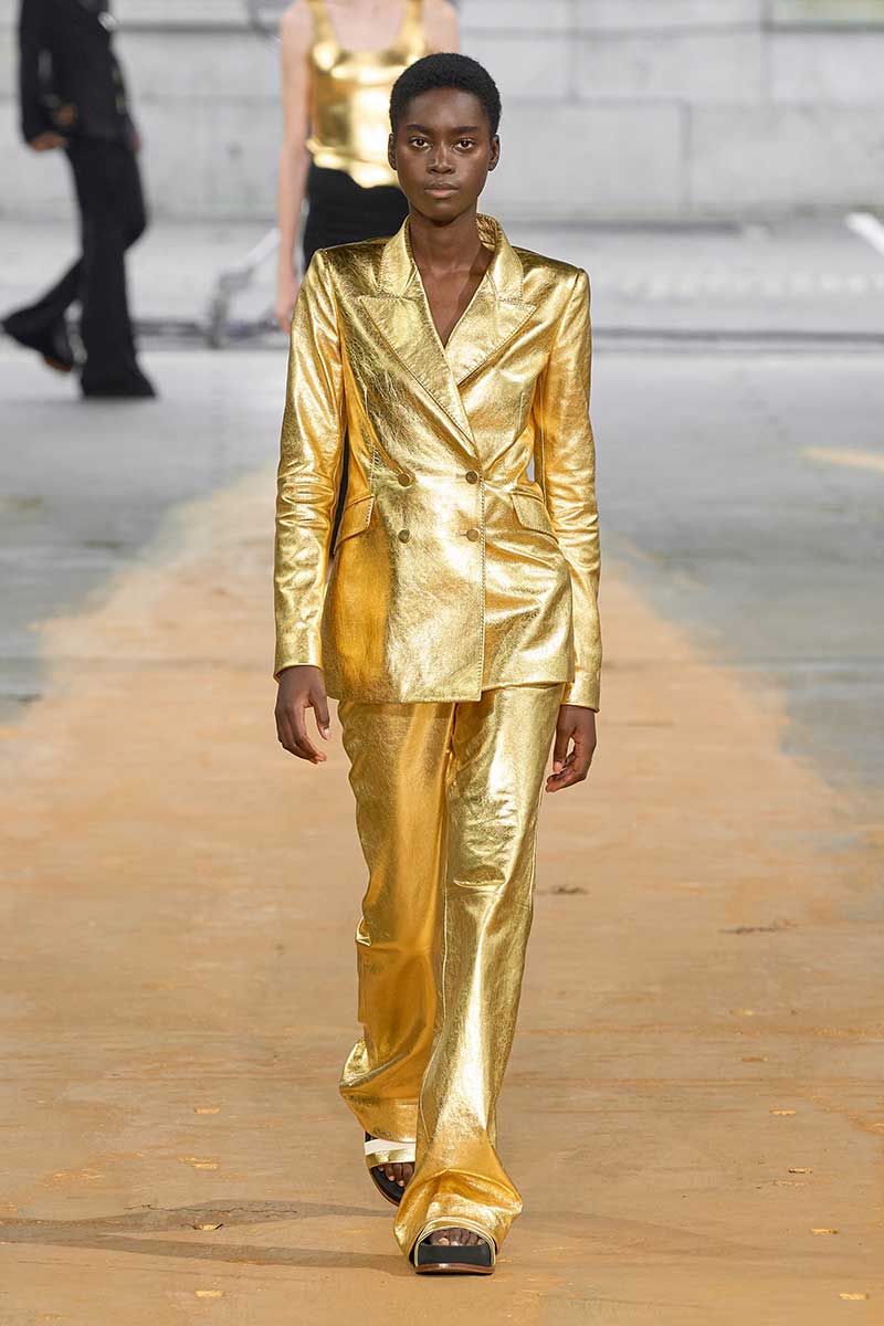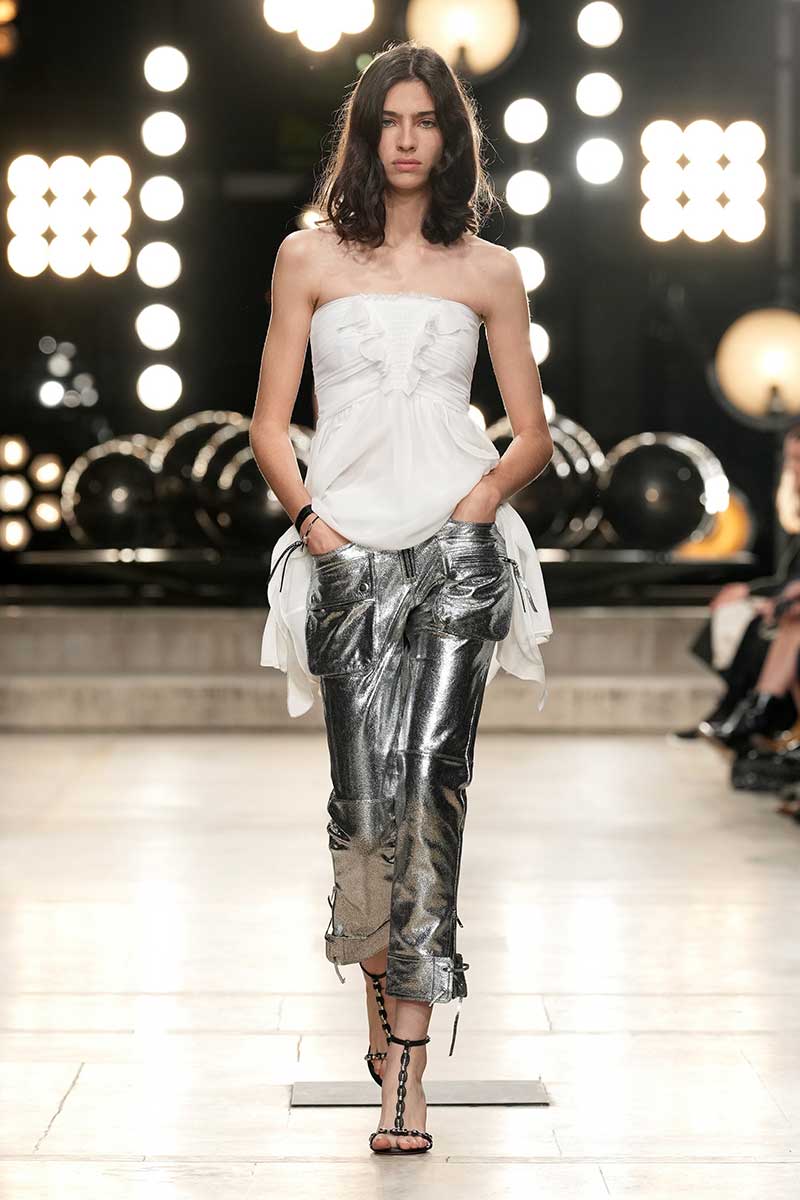 If it’s shiny and metallic, it’s in. This is one of the loudest spring 2023 fashion trends, which is less about full sequin looks and more about adding liquid shine and turning the simplest of everyday items into styles to standout in. Think pairing a metallic skirt with a crisp, white shirt; or, and all white outfit with a cool metallic loafer. And if it tickles your fancy, go all out in a full metallic ensamble. The possibilities are endless!