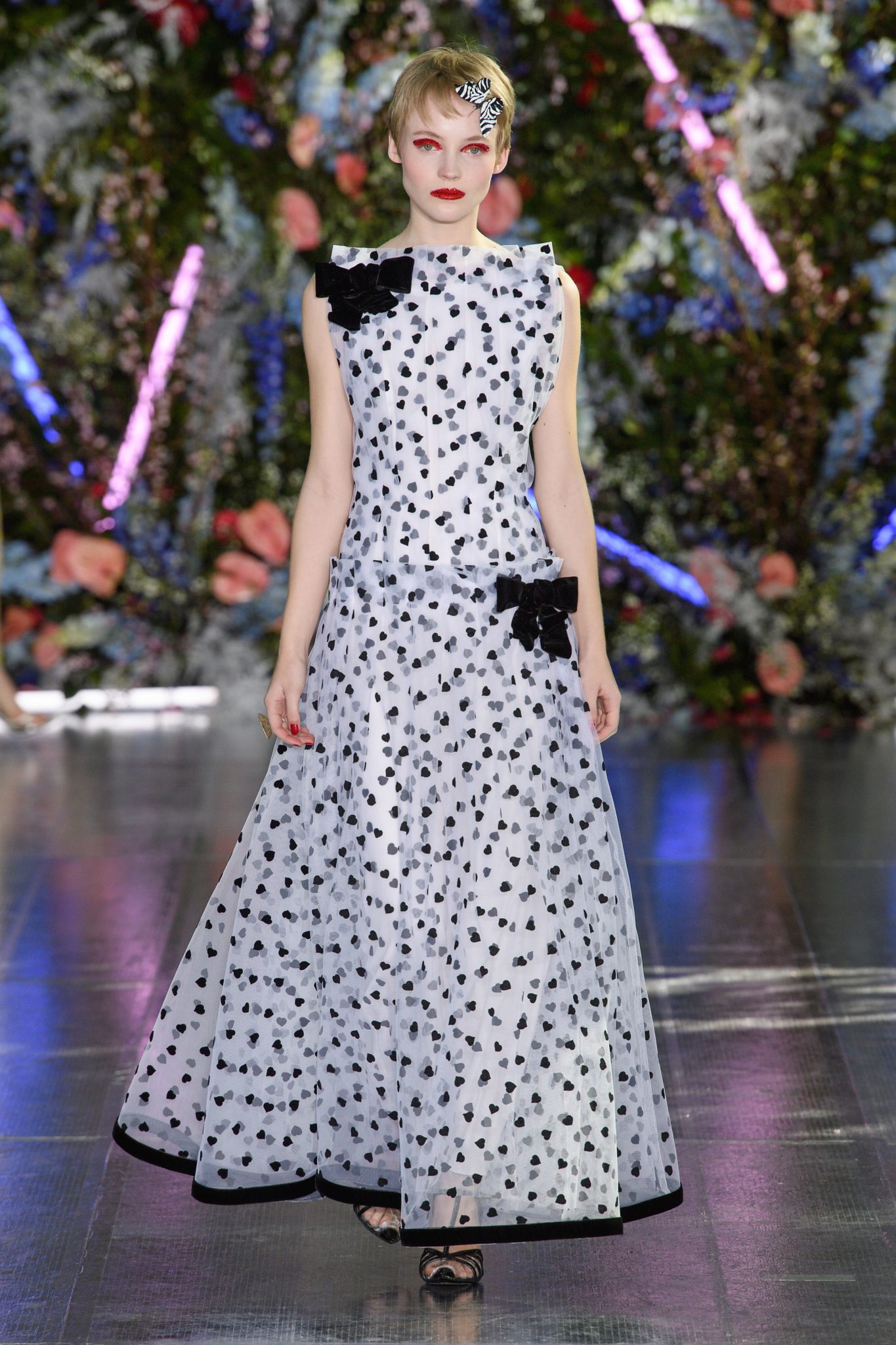 Inasmuch as the Rodarte and the Mulleavy sisters did not show in New York, but in California, we must mention their spectacular collection. Showed in front of a slew of Hollywood it girls, it was only appropriate for the collection to be inspired by the icons of Hollywood musicals from the ’30s through the ’70s. Hence the oversized shoulders, palazzo pants, gowns, and a charming trio of of sleeveless tulle evening dresses covered in black, yellow, and red hearts. One of the most intriguing things the Mulleavy sisters posses is an incredible ability to combine innocent and sexy, sweet and horror, hard and soft, much to our delight.